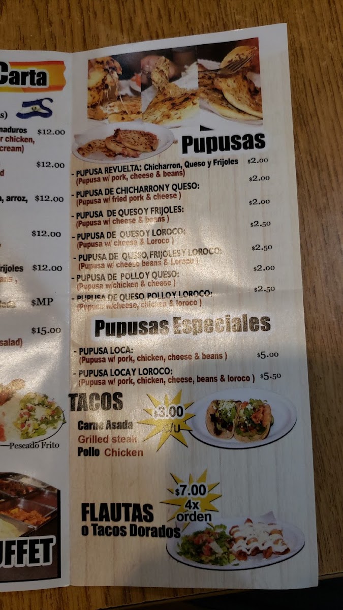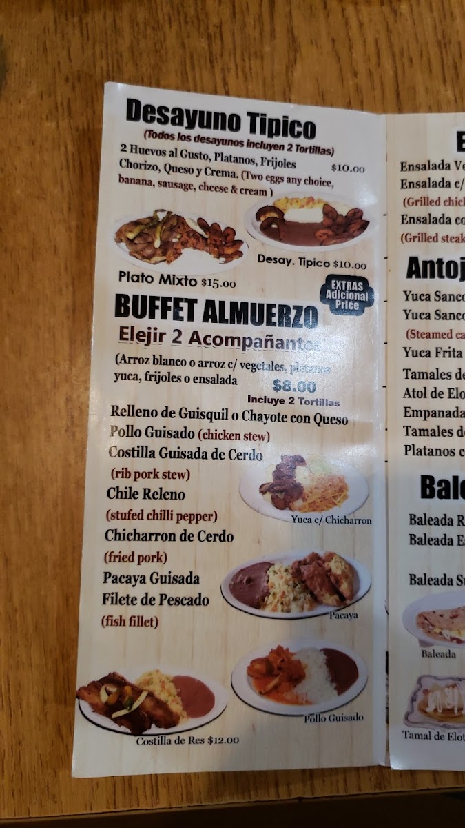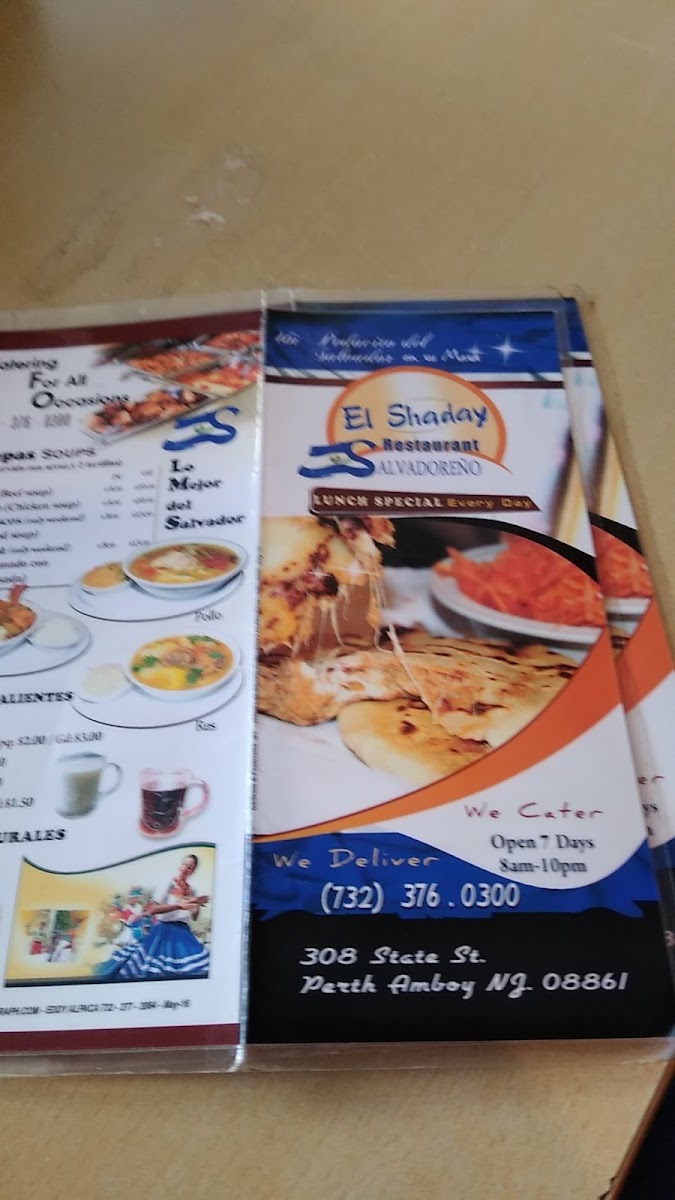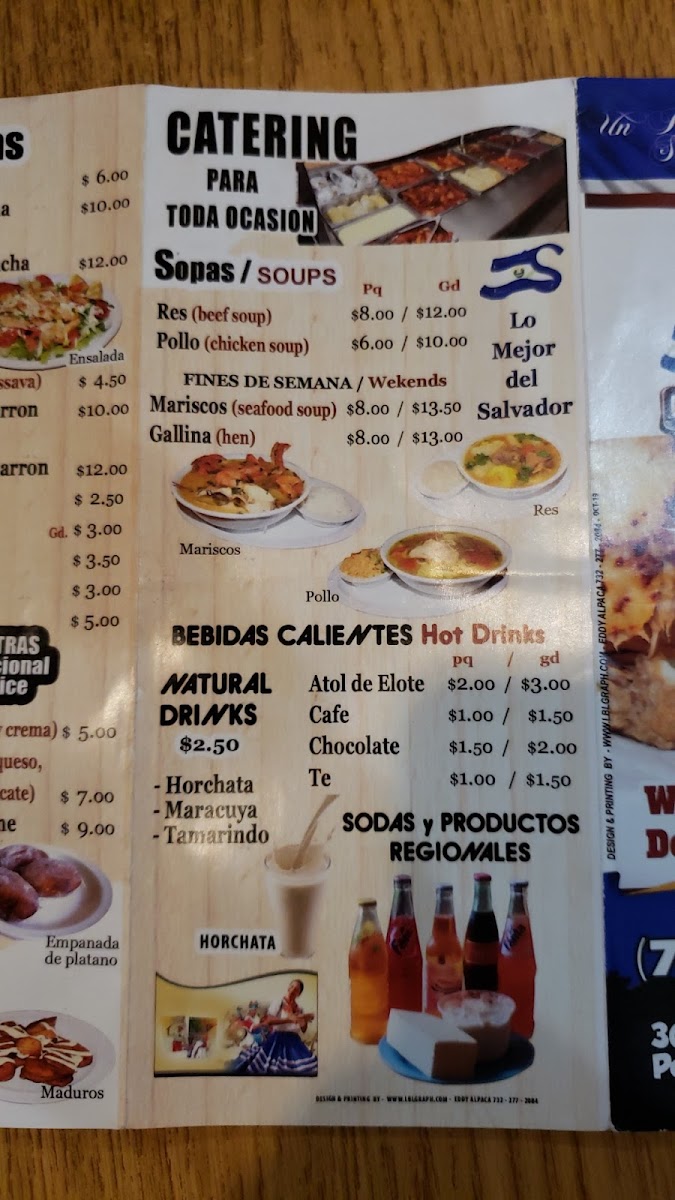 Overall, the menu at El Shaday offers a rich and satisfying snapshot of Central American comfort food, bringing together variety, tradition, and generosity in every category. From the warming Atol De Elote, Cafe, and TeChocolate in the Bebidas Calientes selection to the hearty Desayuno Tipico options like Plato Mixto, 2 Huevos Al Gusto, Platanos, Frijoles, and Desay Tipico, the restaurant sets a strong foundation for a flavorful day. Corn-based specialties shine through the Pupusas Especiales such as Pupusa Loca and Pupusa Loca Y Loroco, while crispy favorites like Flautas and Tacos Dorados add texture and indulgence. The soup section stands out with comforting bowls of Sopa De Marisco (Grande), Res (Beef) Soup, Pollo (Chicken) Soup, and Sopa De Mariscos, ideal for diners seeking something warm and filling. Refreshing Natural Drinks like Maracuya, Horchata, and Tamarindo balance the bold flavors perfectly. Traditional antojitos including Tamales De Elote Con Crema, Yuca Frita Con Chicharrón, Atol De Elote Large, Libra De Queso, and Una Libra De Crema emphasize authenticity and homestyle cooking. The menu continues to impress with satisfying Baleada Super Especial Con Carne, Baleada Especial / Huevo, Frijoles, Queso, Crema Y Aguacate, and Baleada Regular / Frijoles, Queso Y Crema, alongside entrées such as Pollo Con Tajada, Chiles Rellenos De Carne De Res Y Queso, Pollo Guizado, Plato Tipico, and Carne De Res Guisada. To round things out, classic pupusas like Pupusa De Queso, Pupusa Revuelta, Pupusa De Queso Y Loroco, Pupusa De Queso, Frijoles Y Loroco, and fresh salads such as Ensalada Verde, Ensalada Con Carne À La Plancha, and Ensalada Con Pollo À La Plancha make El Shaday’s menu feel complete, comforting, and deeply rooted in tradition-an inviting conclusion to a truly diverse dining experience.